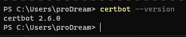В результате выполнения должна отобразиться строчка certbot 2.6.0. (актуальная на момент написания поста версия.)