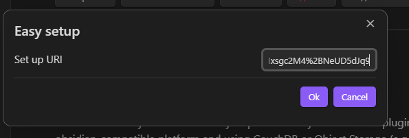После включения плагина, отобразится окно настройки. Нажимаем на первую кнопку "Use the copied setup URI".