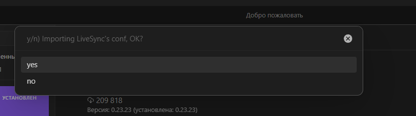 В первом окне указываем "Yes", это разрешение на импорт конфигурации.