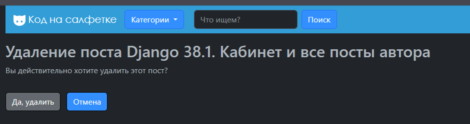Для страницы удаления поста мы напишем отдельное представление.