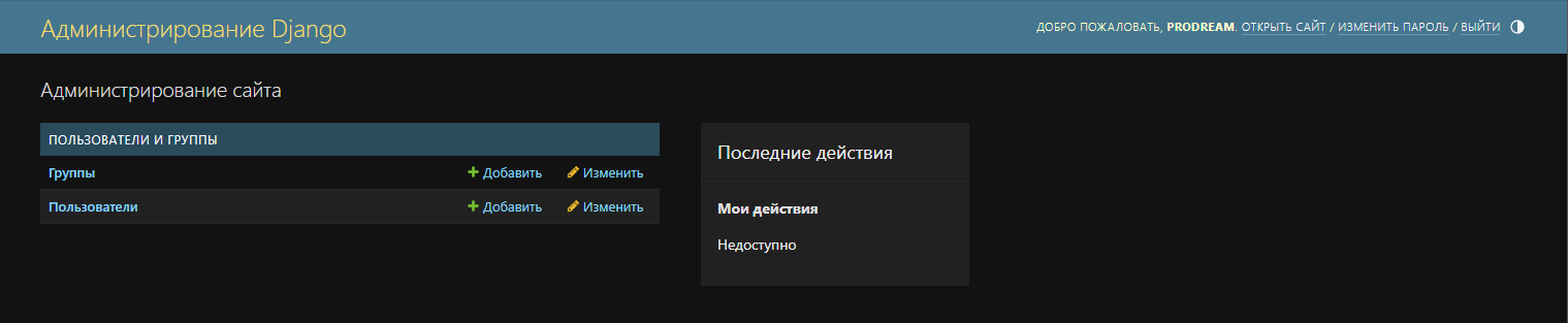 Если вы ранее работали с CMS, то административная панель может показаться не просто скучной, а буквально пустой. Это объясняется тем, что Django - это фреймворк, а не CMS. Многие инструменты мы должны создавать самостоятельно, добавляя их в административную панель.