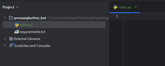 Для запуска бота, нам необходима точка входа, в качестве которой будет файл main.py.